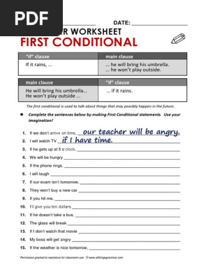 Complete These Eighteen Sentences To Score Your Knowledge Of The First Conditional Fill Online Printable Fillable Blank Pdffiller