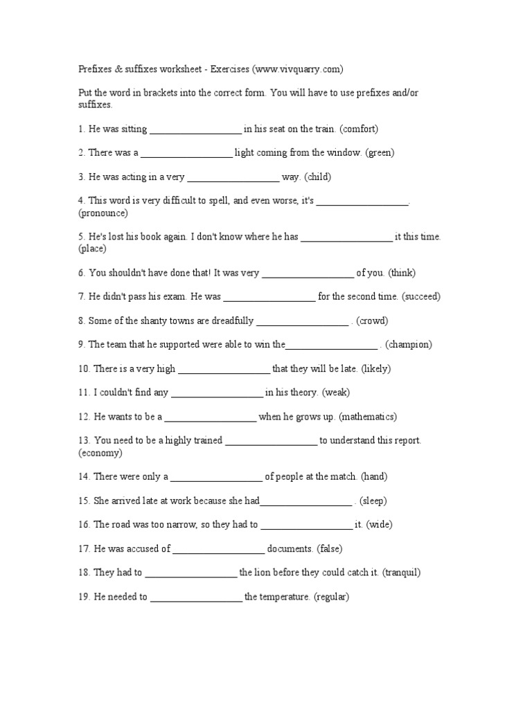 Prefixesandsuffixes Exercise Answers Pdf Cognition